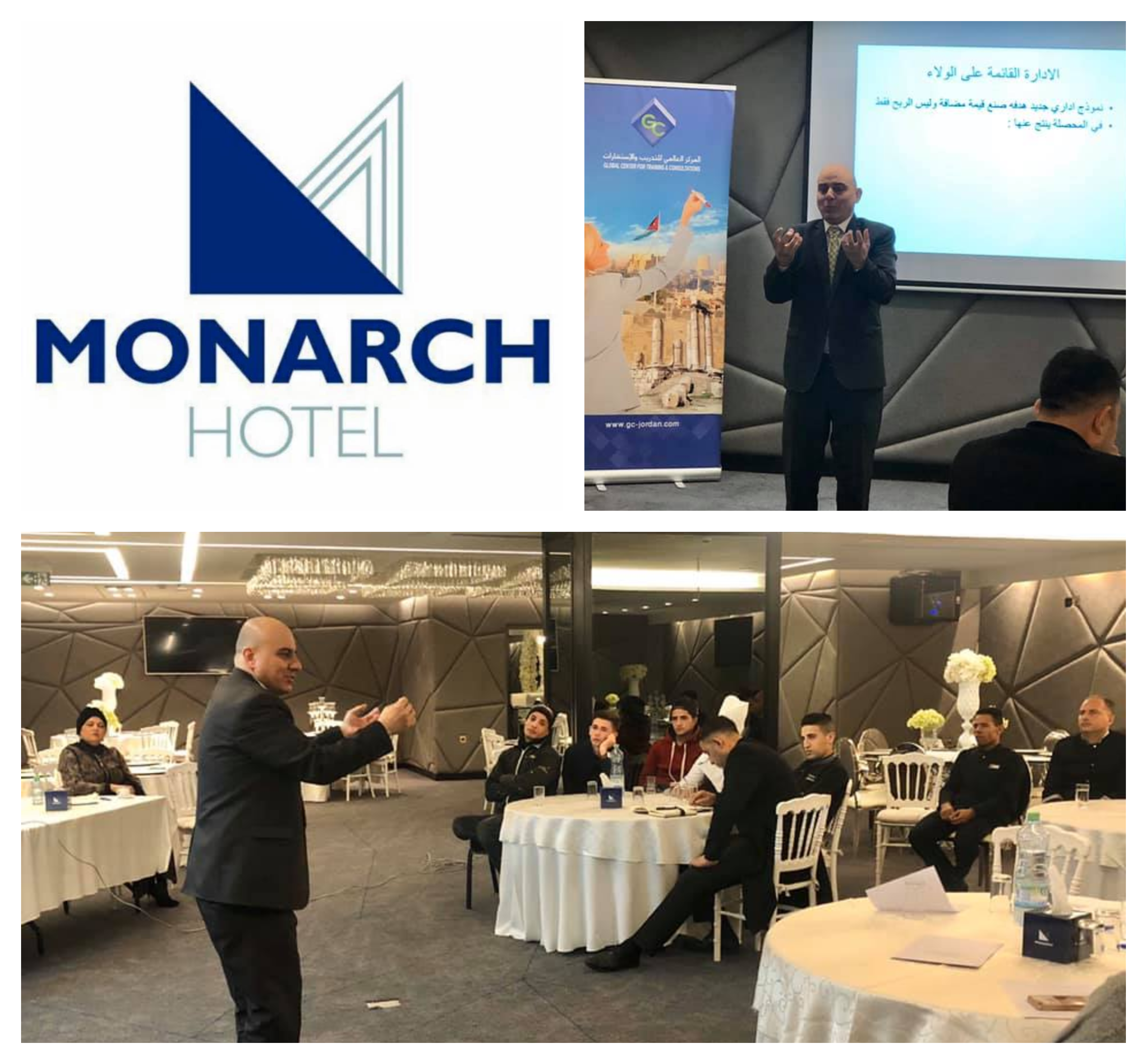 On Saturday 18/1/2020, a special workshop that lasted for four hours was held by the Global Center & led by Dr. Hassan Khasawneh for the Monarch Hotel staff in Amman - Jordan, and in which more than twenty employees of the hotel attended, beliving in the hotel's management; the General Manager, Mr. Ahmad Al-Hwaiti & HR Manager, Miss Ruwaida Al-Khalayleh & in the importance of training and development for employees and enhancing loyalty between the employee and the institution under the title, Institutional Loyalty & the importance in raising employee efficiency and performance, hence the return to the workplace & increasing productivity. Supervised by the Center's Executive Director, Mrs. Nada Haroun.