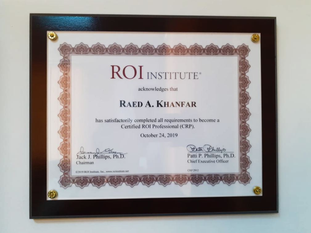 Dr. Raed Khanfar is Certified ROI Professional (CRP).