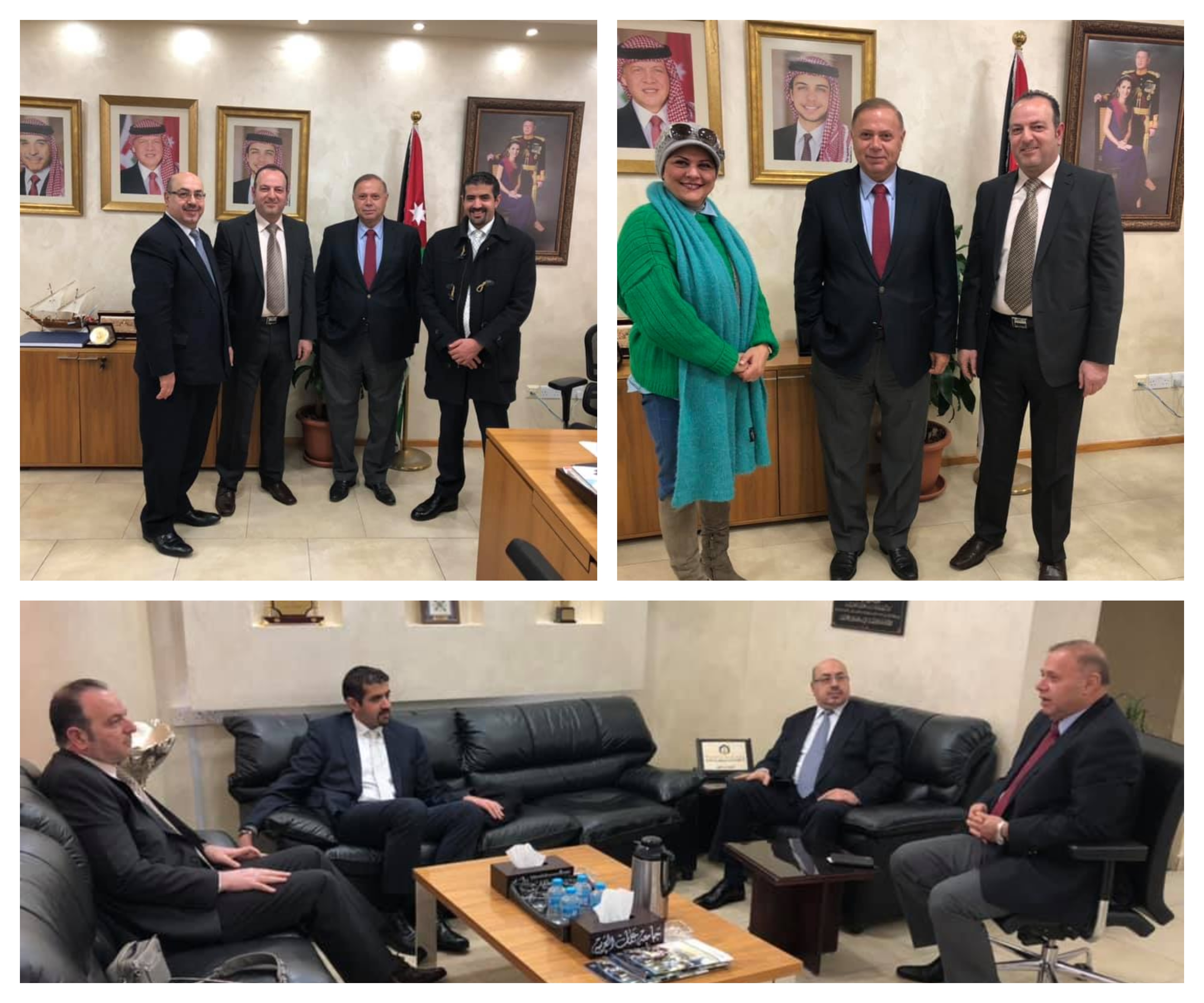 A special visit on Sunday 3/31/2019 from the Global Center's CEO Dr. Raed Khanfar and it's Executive Manager Ms. Nada Haroun, and Al-Fanar Hotel's management represented by Mr. Ibrahim Mustafa and Mr. Shoukri to his Excellency the President if Amman Arab University, Professor Maher Sliem to discuss cooperation between the Global Center and Amman Arab University which will be soon, after the holy month of Ramadan.
